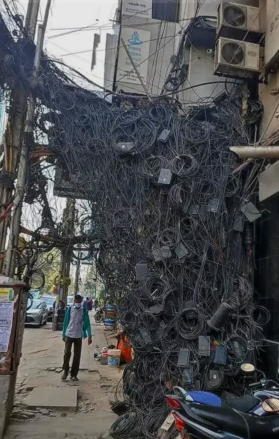 Overhead cables that were supposed to be underground. Source: Twitter.